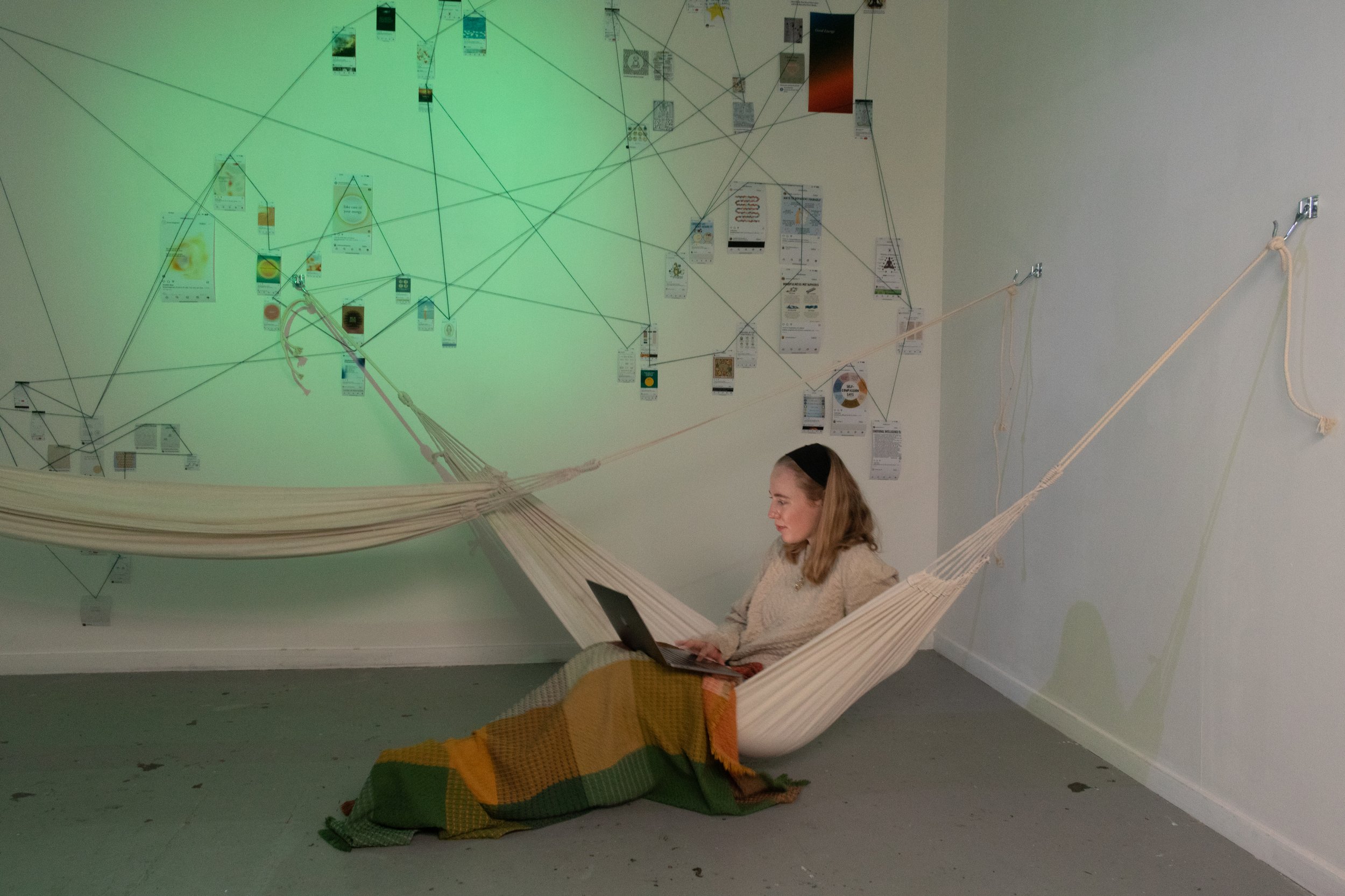 'Green Print Studio' was an exhibition at The Casting Room. Exploring an alternatives to office work, it critiqued the traditional desk, chair and laptop structure; re-imagining methods of productivity. As a solo exhibition, I oversaw the curation, creation, visual layout and marketing of the exhibition. Opening night was a huge success, and many people came and used the space throughout it's two week run period.